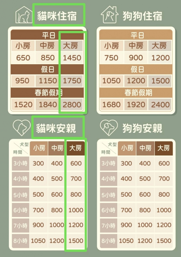 > 貓咪大房型 住宿費用.住宿優惠